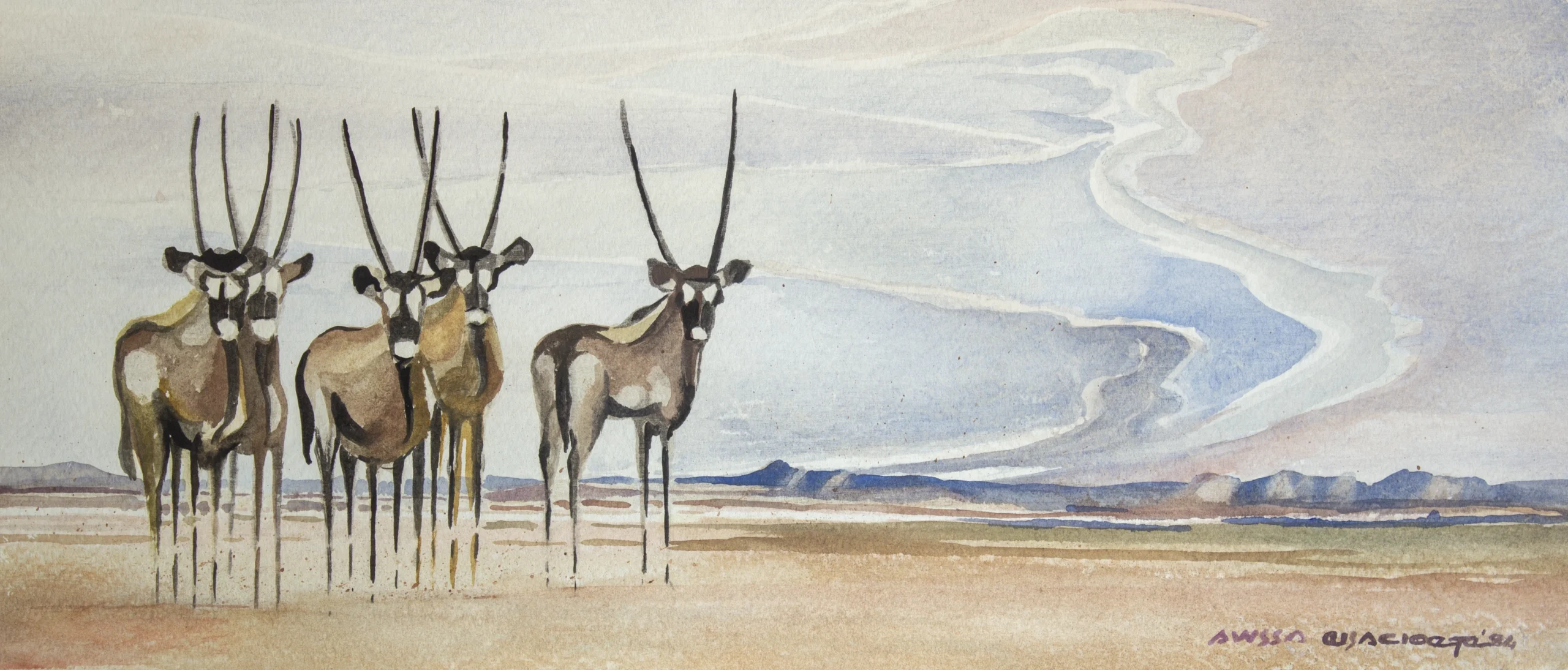 Adolph Jentsch was a German-born Namibian artist who caught my attention in the way he used brush strokes to capture the vastness of the landscape which reminded me of my our regular visits to the Northern Cape Province as a child. The vastness of the country side at Campbell made a lasting impression on me. The work of Adolf inspired me to capture landscapes in the same manner.